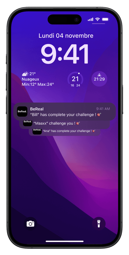 En manque d’inspiration ? BeReal propose des défis prédéfinis alimentés par l’IA en fonction du profil cible, ses habitudes, avec un génération infinie d’idées.